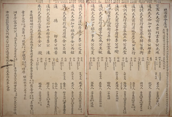 첩에는 참석할 예정이었으나 참석하지 못한 사람까지 모두 포함한 15인의 명단이 있고, 그 뒤를 이어 호종한 그 후손들의 명단이 있다. 그 명단에는 겸재의 평생지기였던 사천(槎川) 이병연(李秉淵)의 이름도 보인다. 그는 좌목에 가평군수로 이름을 올린 이속(李涑)의 아들이다.